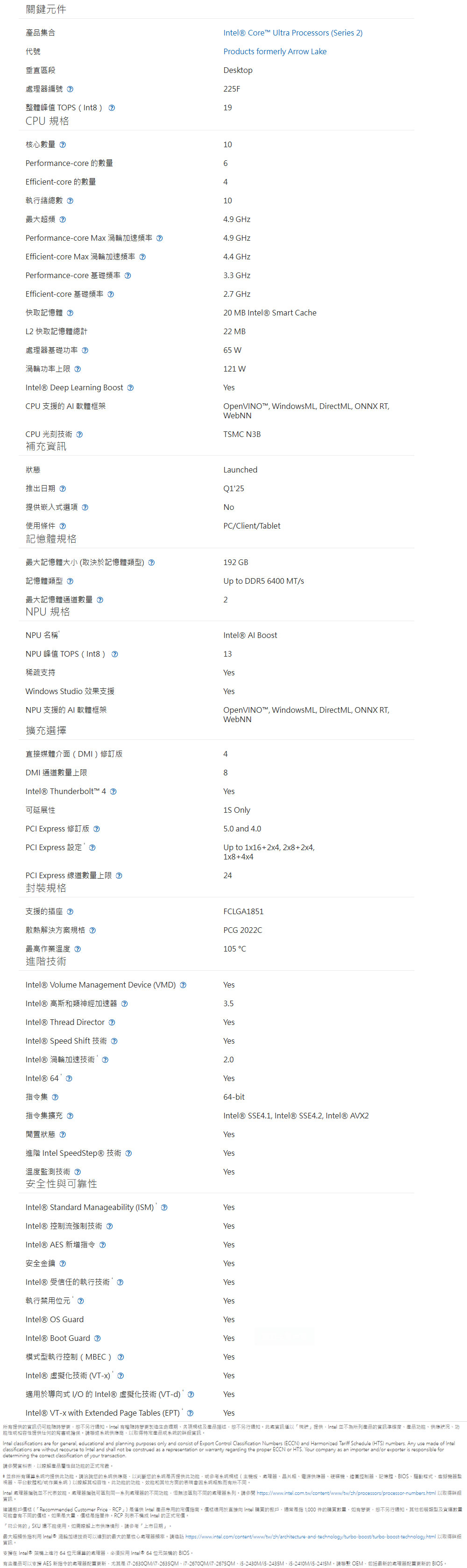 商品型號: INTEL 盒裝Core Ultra 5 225F
